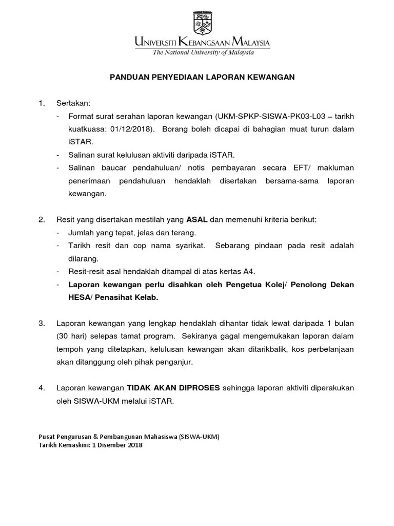 Format laporan kewangan aktiviti pelajar ums. Laporan kewangan program kumpul dan derma persatuan mahasiswa fakulti sains dan teknologi tarikh : (30 hari) selepas tamat program.